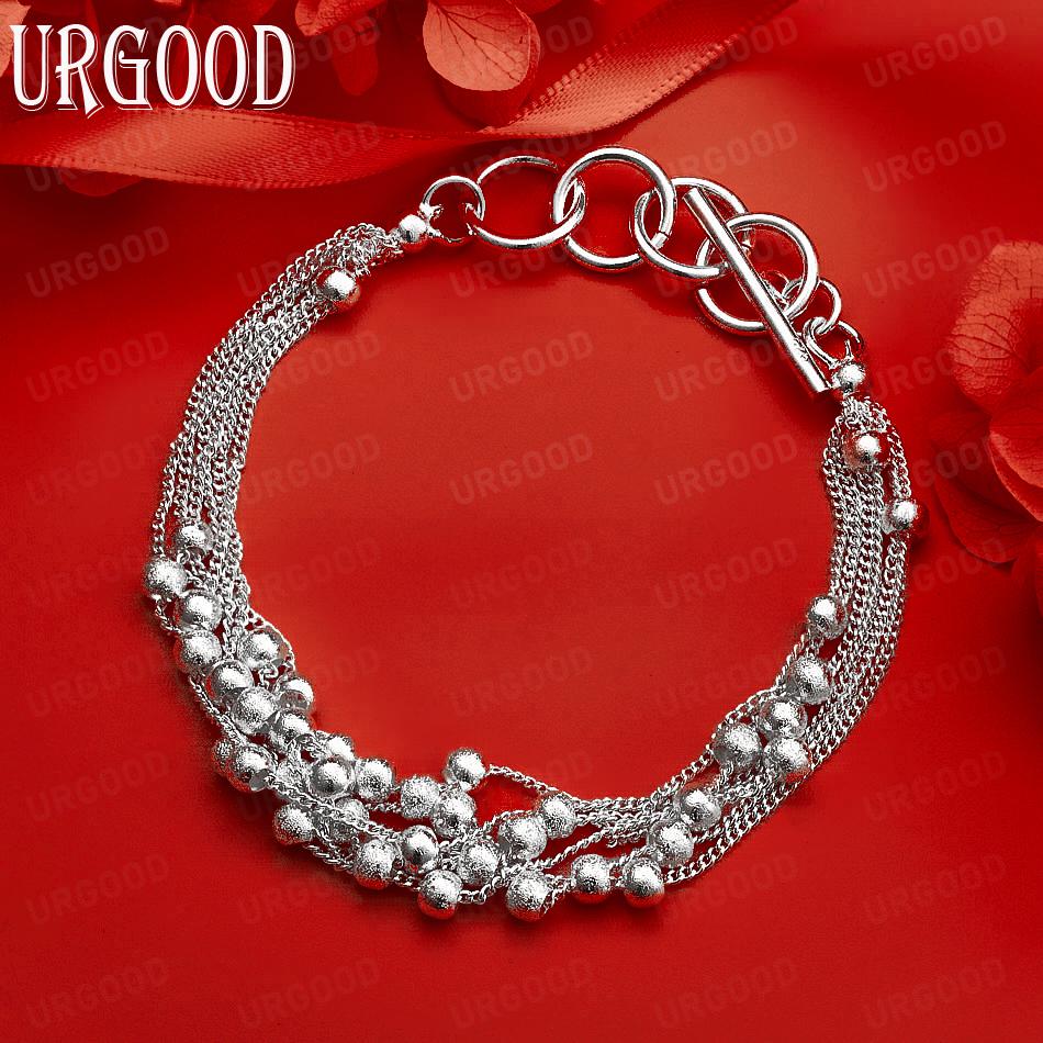 925 Sterling Silver Multi-Chain Grape Bead Bracelet Fashion Jewelry