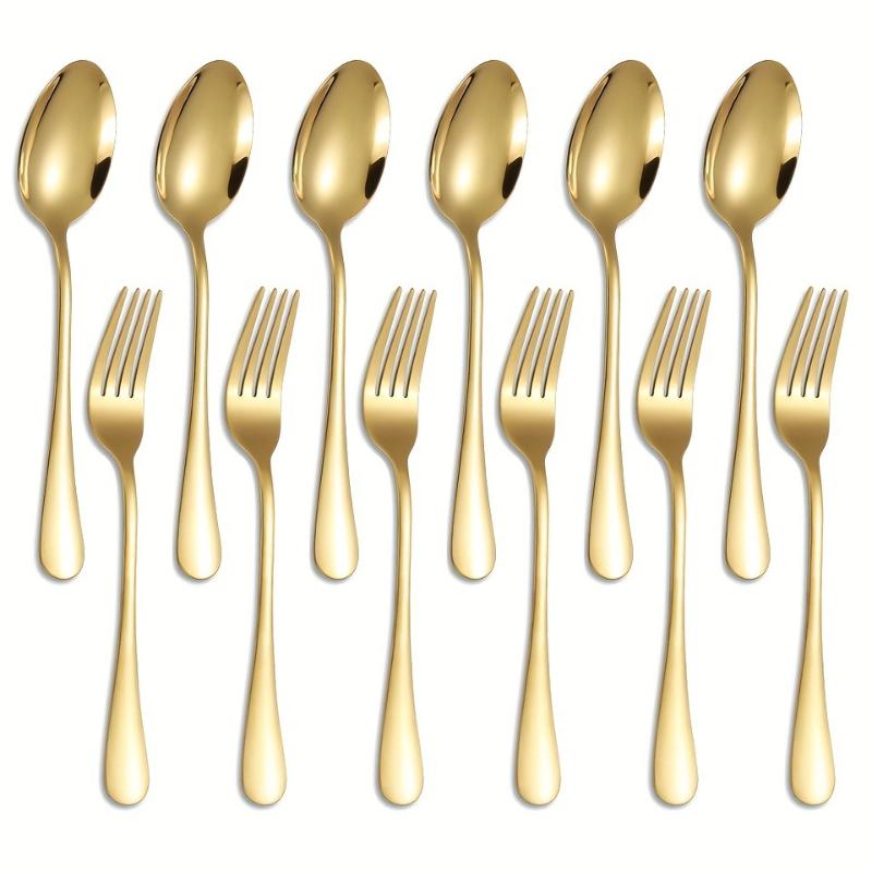Set 12 Bucăți Linguriță și Furculiță din Oțel Inoxidabil Argintiu Auriu Set Veselă de Bucătărie și Casă Linguriță Grosă Grad Alimentar