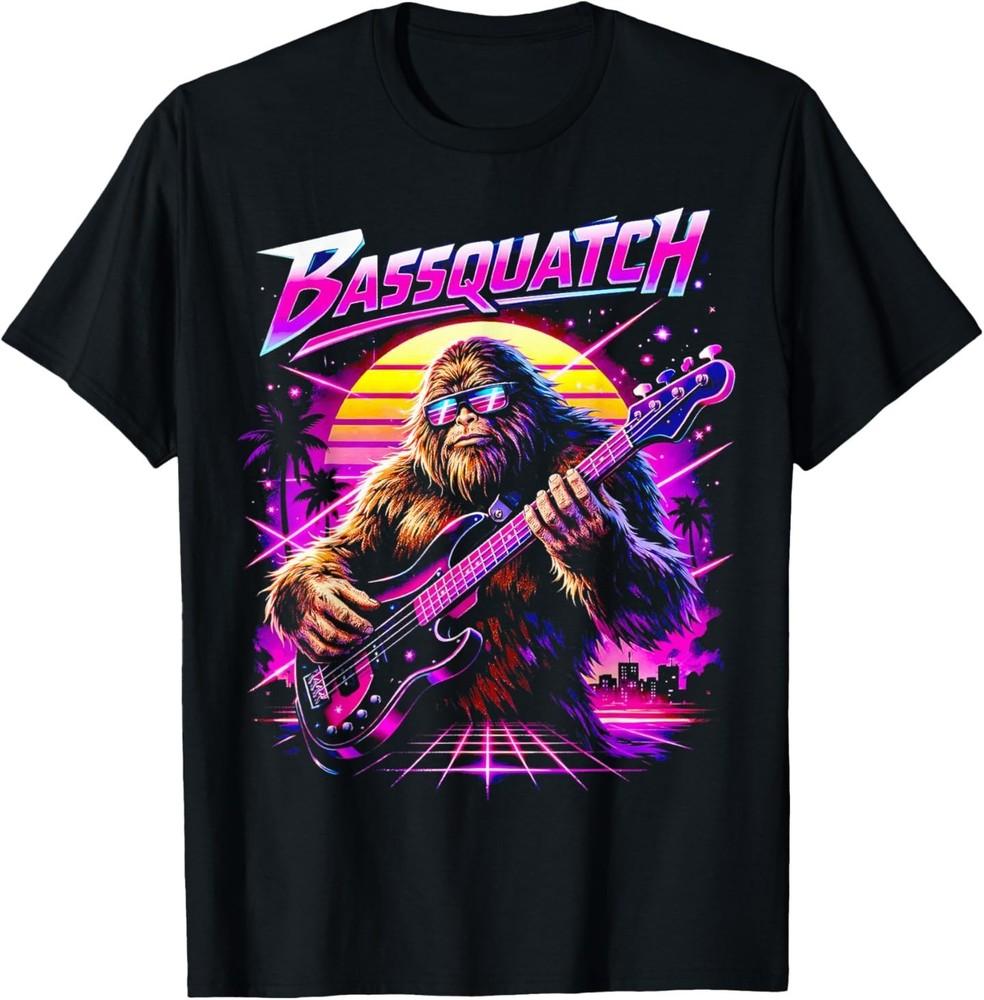 Bassquatch, Synthwave Bigfoot Bass Guitar Sasquatch T-Shirt Unisex T-Shirt