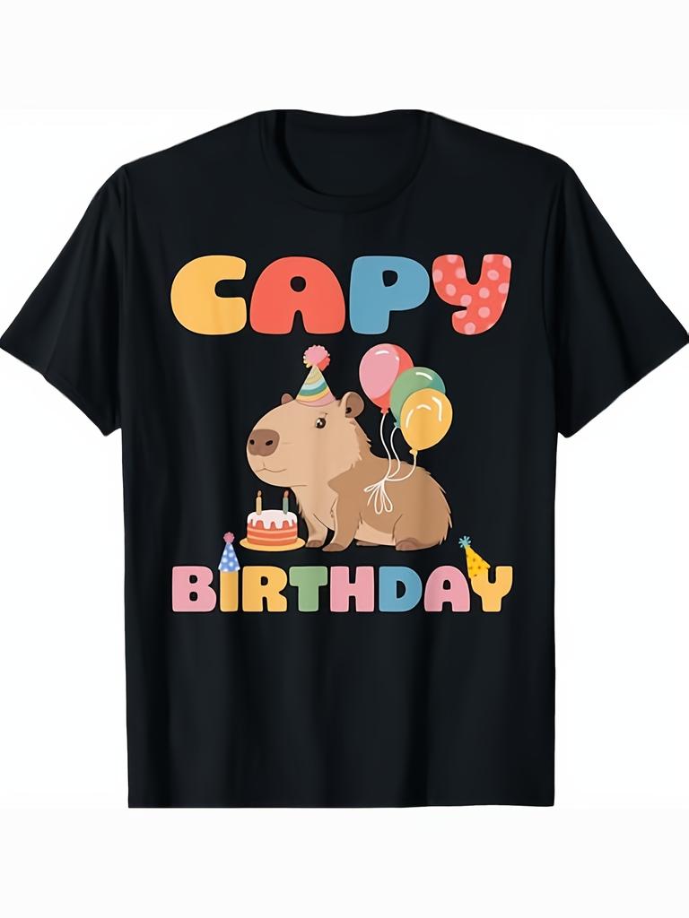 Mens Capybara Birthday Graphic TShirt Soft 100 Cotton Casual Tee with Playful Party Design Short Sleeve Black