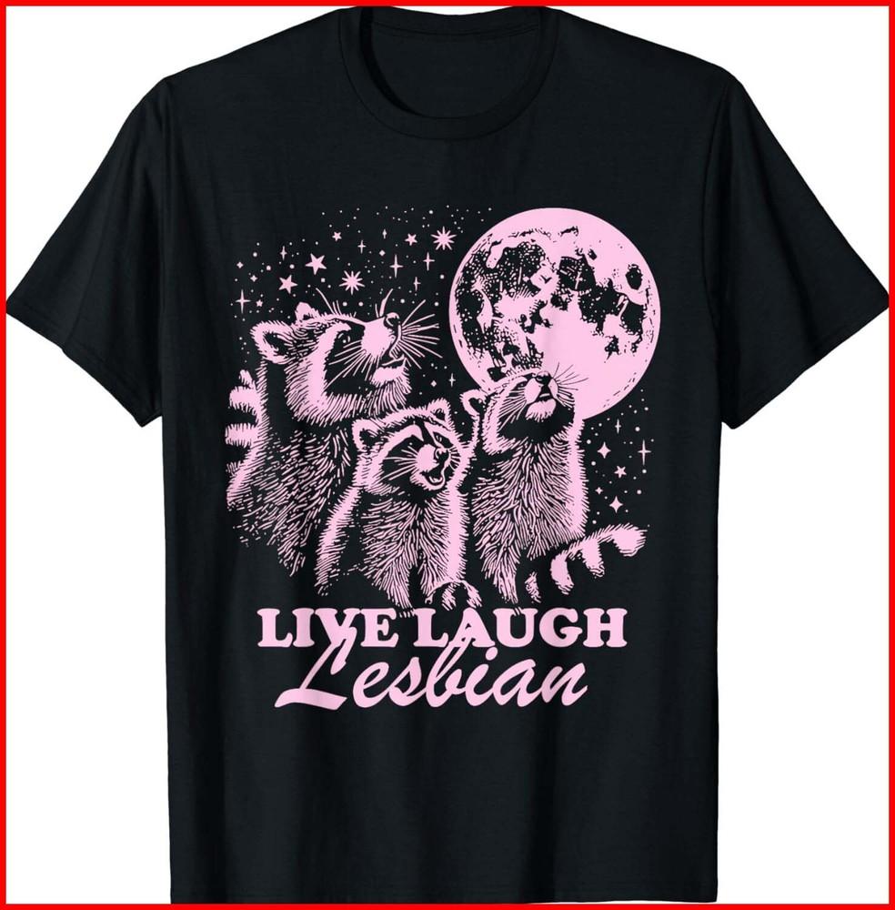 Live Laugh Lesbian Funny Raccoon Lesbian LGBTQ Pride Month Black T-Shirt Unisex T-Shirt