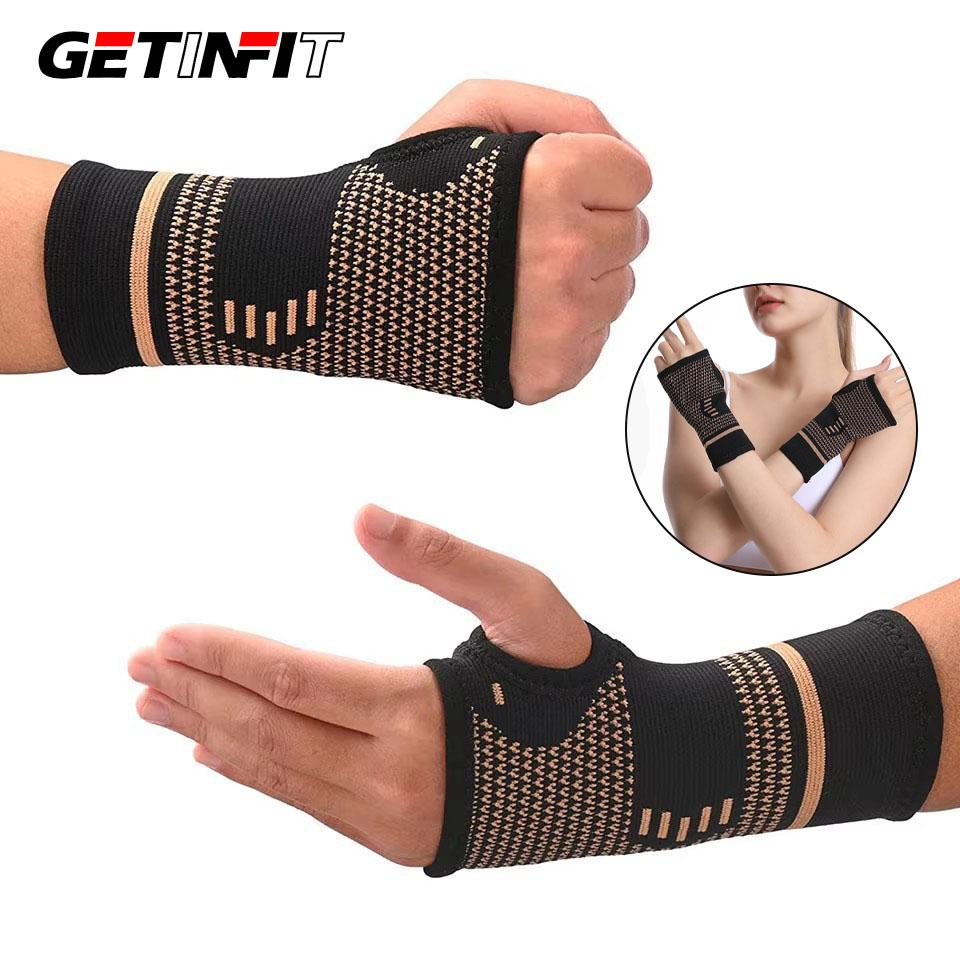 Getinfit 1Pcs Copper Wrist Support Breathable Nylon Knit Elastic Compression Sports Palm Brace Unisex