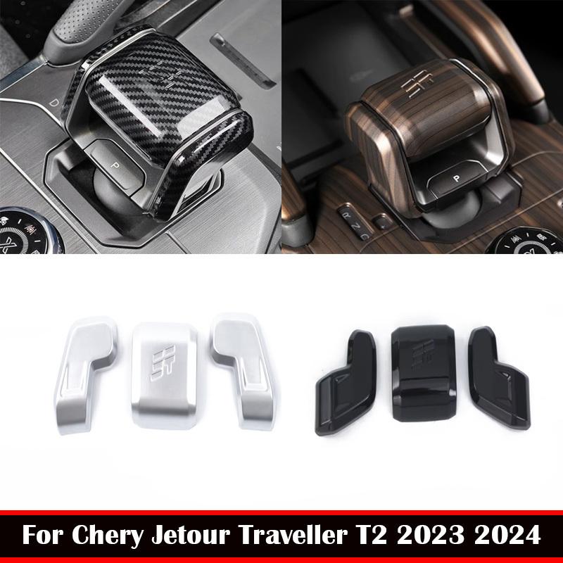 For Chery Jetour Traveller T2 2024 ABS Carbon Fibre Handball Trim Sticker Frame Gear Head Knob Cover Interior Accessories