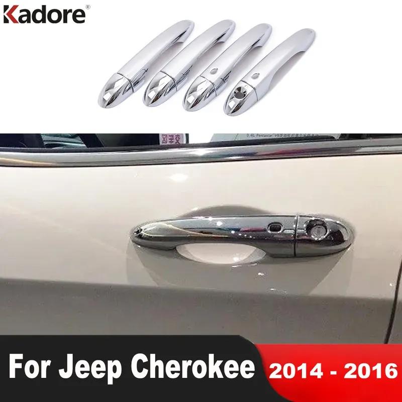 Door Handle Cover Trim For Jeep Cherokee 2014 2015 2016 Chrome Car Side Door Handles Catch Cap Garnish Overlay Frame Accessories