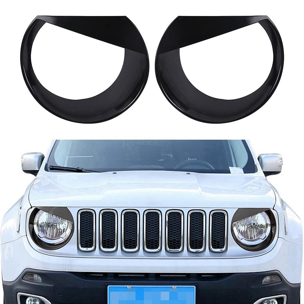 Ac29-Angry Eyes Front Headlight Bezels Trim Cover For Jeep Renegade 2015 2016 2017 2018 (Black)