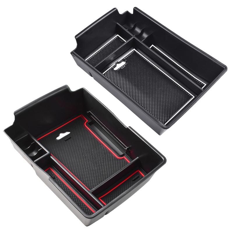 Red center console storage box with anti-slip mat Center Organizer Tray ABS Black Suitable for Hyundai 5th Gen Tucson