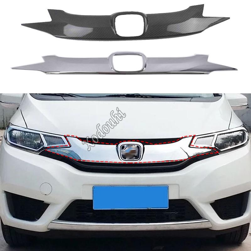 For Honda Fit Jazz 2014 2015 2016 2017 Car Styling Body ABS Chrome License Plate Trim Racing Grid Grill Grille Hoods Panel Frame