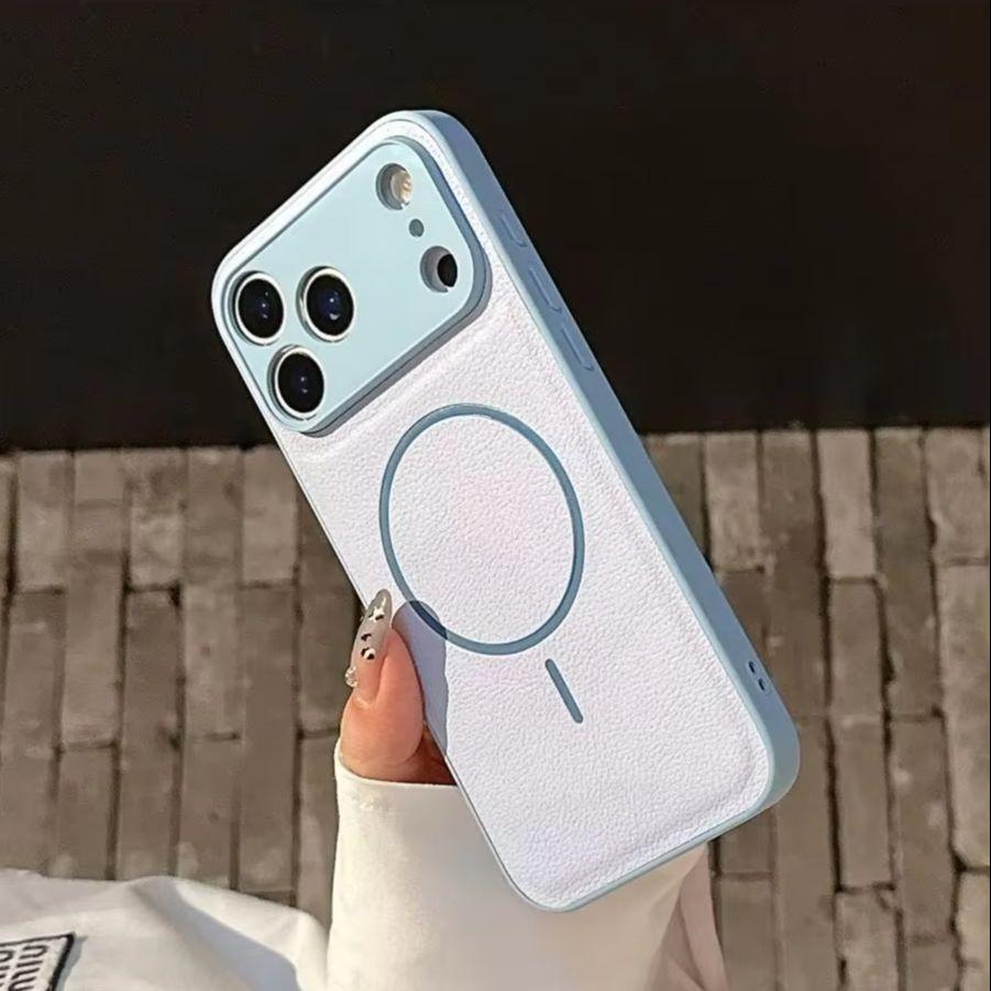 Business Vegan Leather For Magsafe Magnetic Case For iPhone 17 Air 16 15 14 Plus 13 12 11 Pro Max Solid Color Shockproof Cover