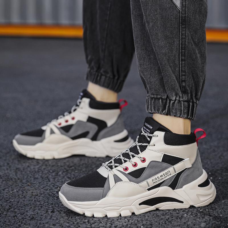 Winter Men's Shoes High Top Men's Sneakers New Fashion Versatile Platform Leather