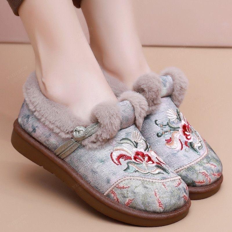Women's winter ethnic style cloth shoes warm mother shoes new Chinese cotton shoes piled thickened embroidered shoes