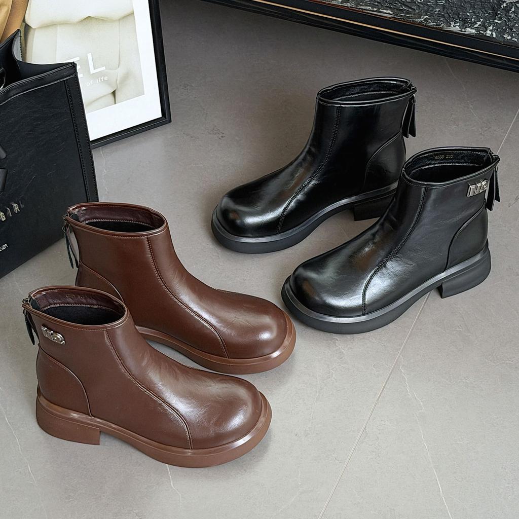Autumn and winter velvet warm Martin boots women's rear zipper small short boots women's thick-soled casual thin boots women