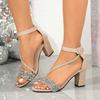Summer new fairy wind rhinestone transparent thick heel sandals European and American buckle sandals