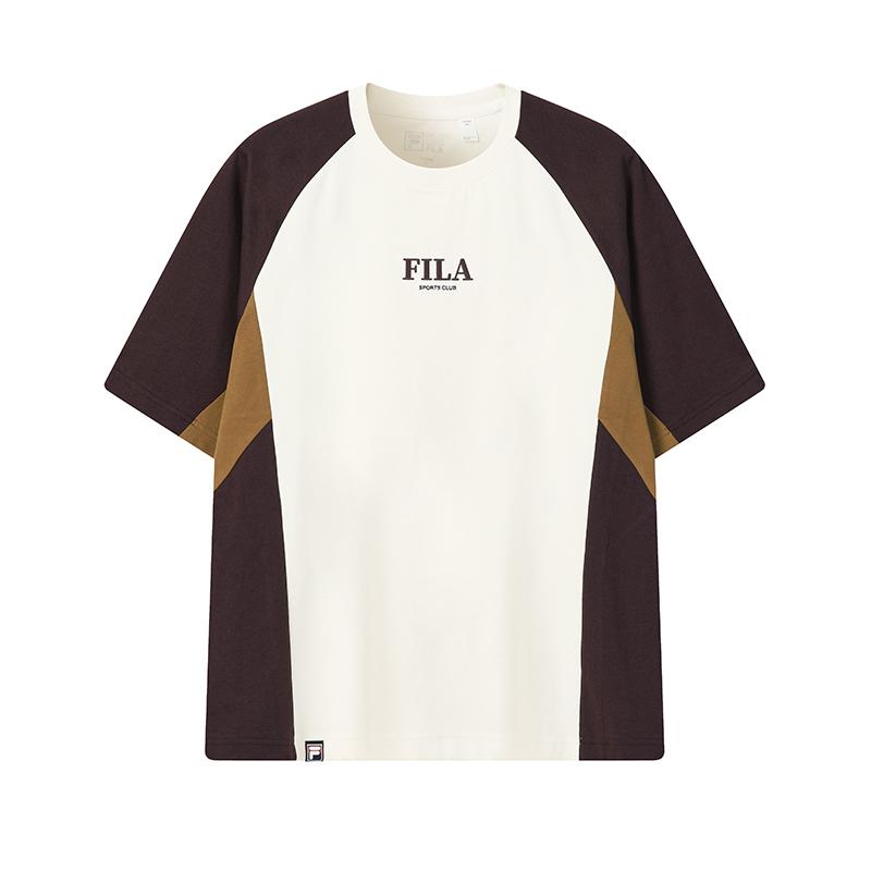 FILA Original Loose Fit Color Block Knit Short Sleeve T-Shirt Men tops F11M619105F-IV