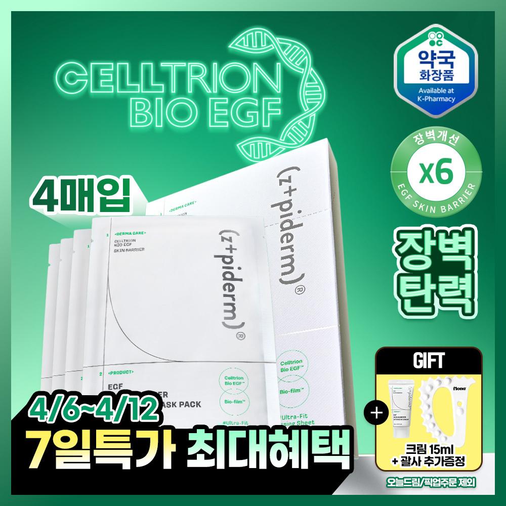Gpiderm Celltrion EGF Skin Barrier Dressing Mask Pack 4 Sheets is a 3-in-1 mask pack dedicated to strengthening the skin barrier, providing soothing, barrier, and elasticity care functionality. This product features dual functions for whitening and wrinkle improvement, containing Celltrion’s proprietary ingredient, Celltrion Bio EGF™, which maximizes the absorption rate of active ingredients by 170 times using double liposomes. The combination of Bio Film™ ingredients also reinforces the skin barrier effectively.