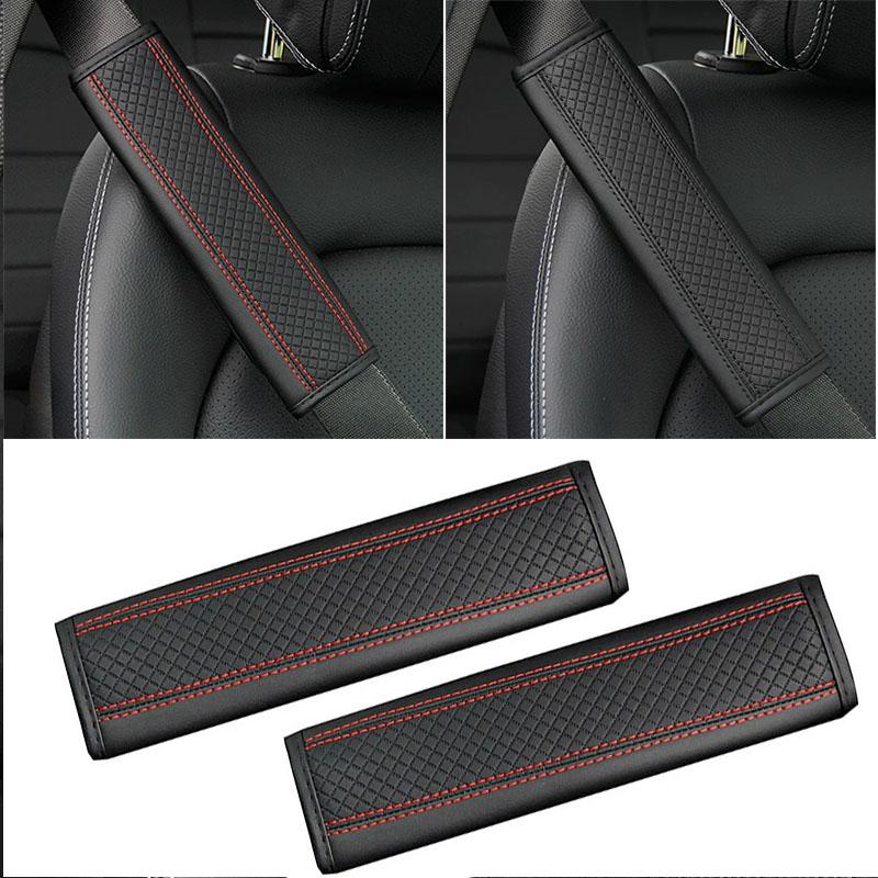 1/2Pcs PU Leather Car Seat Belt Shoulder Cover Embossed Safety Belt Protective Cover Comfortable Embroidered Auto Seatbelt Trim