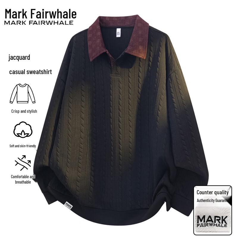 Mark Fairwhale Men's American Style Loose Fit Polo Sweatshirt