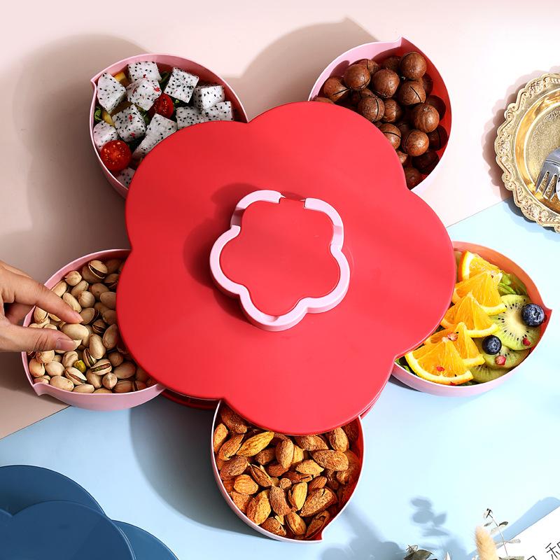 Petal Shape Rotating Candy Box Snack Nut Box Flower Candy Fruit Plate Food Storage Case Two Deck Dried Fruit Storage Organizer