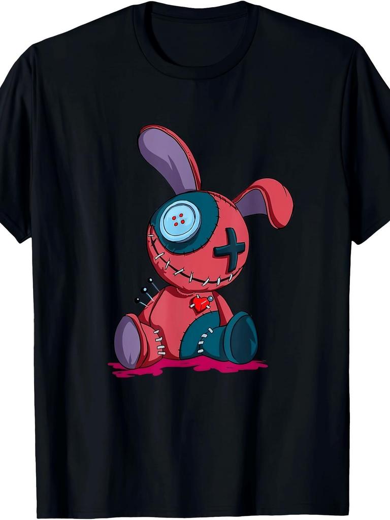 MenS Spooky Pink Bunny with Goggles Halloween TShirt Black Horror Graphic Tee for Adults Machine Washable Regular Fit