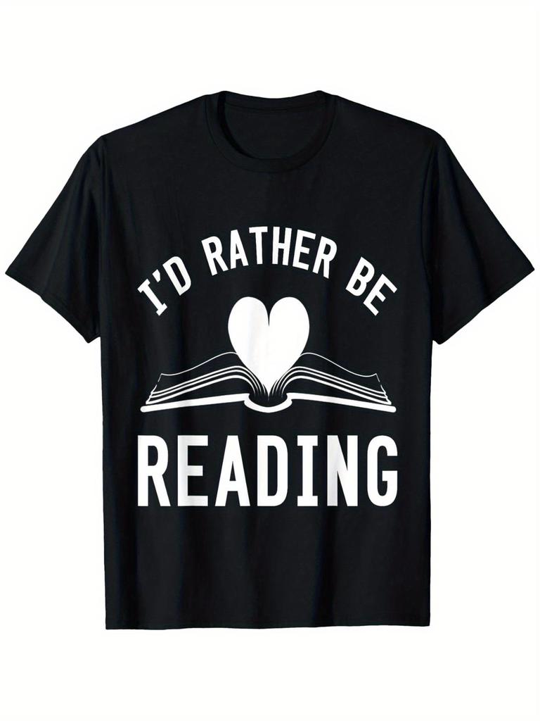 d Rather Be Reading TShirt Heavyweight 180g 100 Cotton Book Lover Gift with Stacked Books Heart Graphic