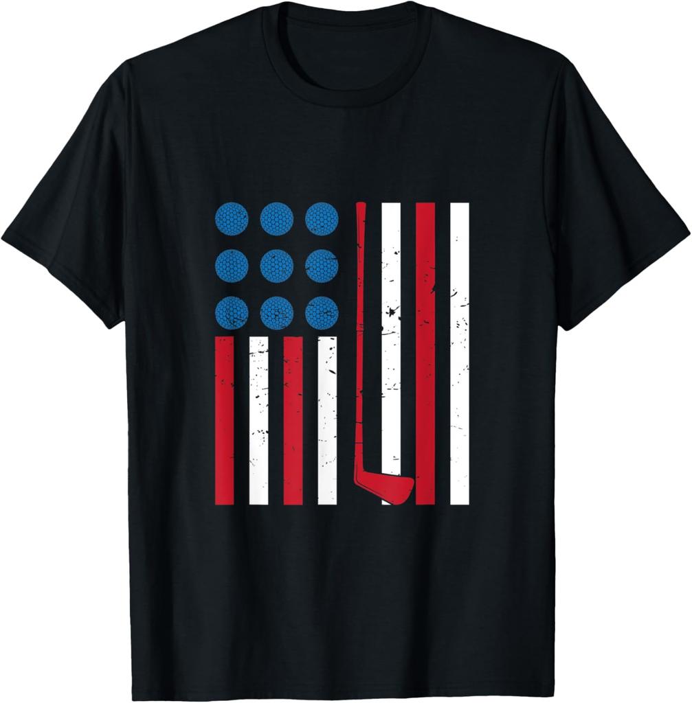 Distressed American Flag Golf Stick And Balls Graphic Tee Vintage Sports TShirt For Men
