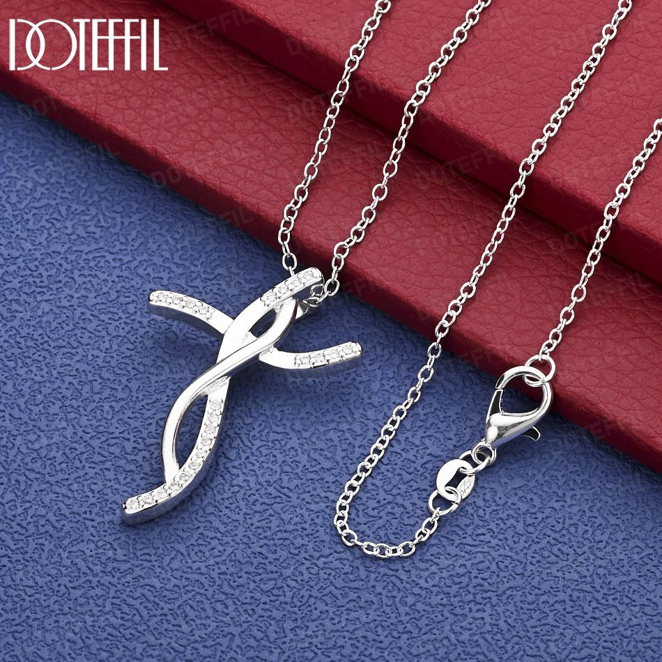 925 Sterling Silver AAA Zircon Cross Pendant Necklace Fashion Jewelry