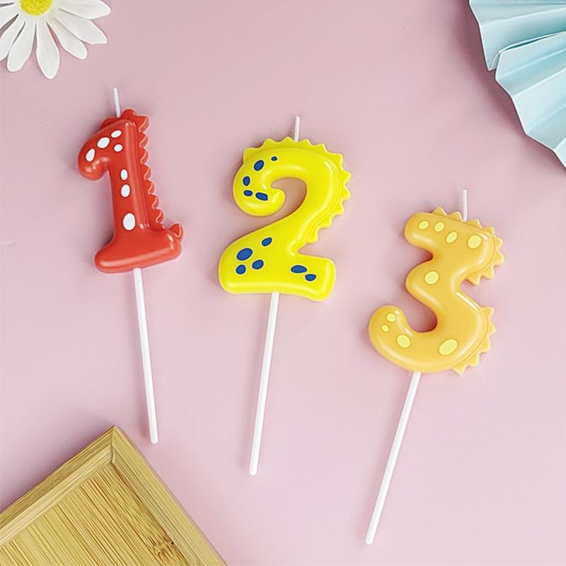 Baby Dinosaur Digital Birthday Candle Smokeless 0-9 Year Old Cute Candy Color Digital Candle Wholesale