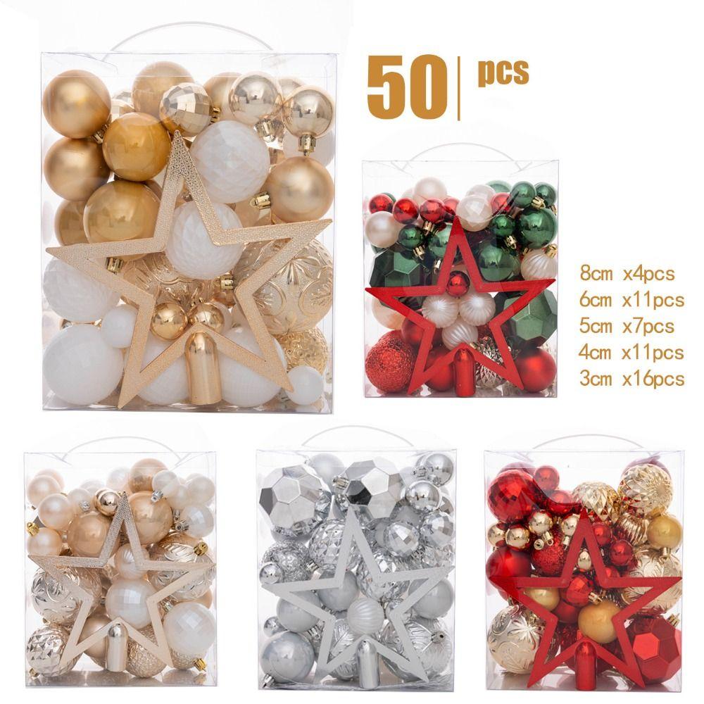 50PCS Fashion Plastic Christmas Ball Set 3/4/5/6/8cm Suspensable Christmas Tree Balls Multicolor Xmas Baubles Scene Supplies