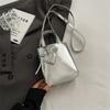 Trend Korean Pu Leather Shoulder Bag Silver High Quality Crossbody Bags Mini Small Square Bag for Women Lady
