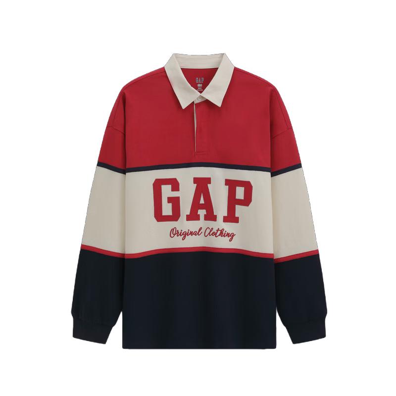 GAP Unisex 2026 Spring Vintage Washed Colorblock Relaxed Fit Long Sleeve Polo Shirt