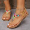 Summer Bohemian Beaded Sandals for Women Slip on Comfort Clip Toe Rome Flat Heels Non Slip Beach Woman's Sandals Sandalias Mujer