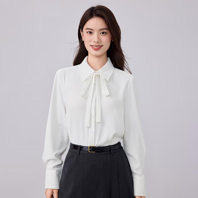 Women's Detachable Bow Tie Long-Sleeve Chiffon Blouse