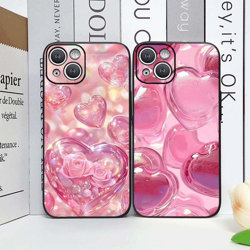Stylish Pink Heart-Shaped Crystal Phone Case for iPhone 17 16 12 11 14 Plus 13 14 15 Pro Max 12 13 Mini X XS MAX XR Soft Covers