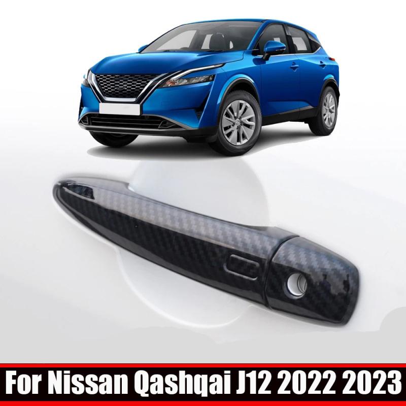 For Nissan Qashqai J12 ABS black Carbon Fiber Chrome Car Door Handle Cover Stickers Styling Accessories