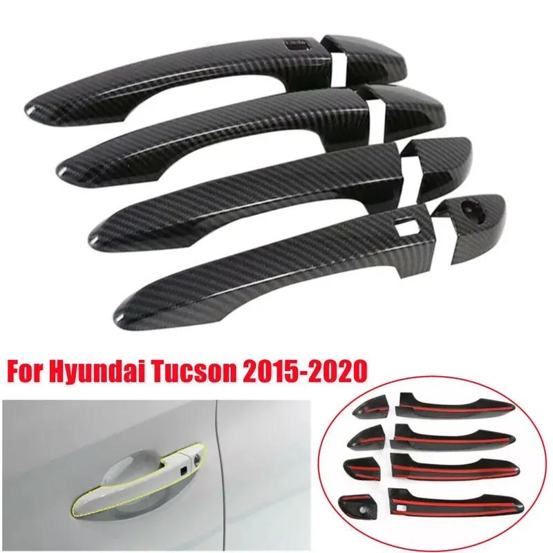 For Hyundai Tucson 2015 2016 2017 2018 Car Carbon Fiber Style Exterior Door Handle Moulding Cover Trim Decor ABS Auto