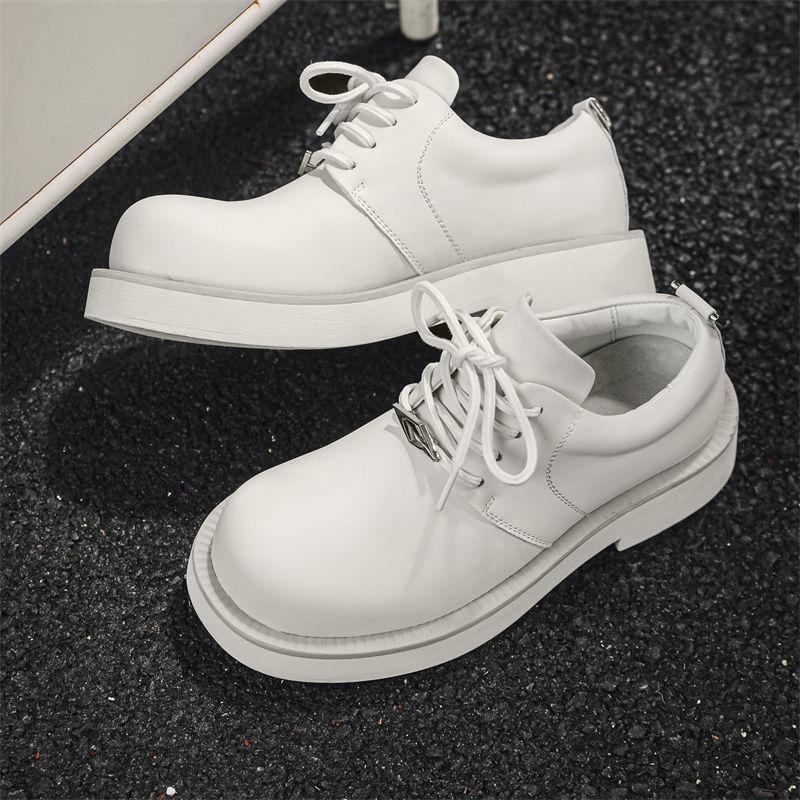 Women British Upturned Head Big Head Leather Heightened Platform Couple Casual Commuting Versatile Men's Derby Shoes