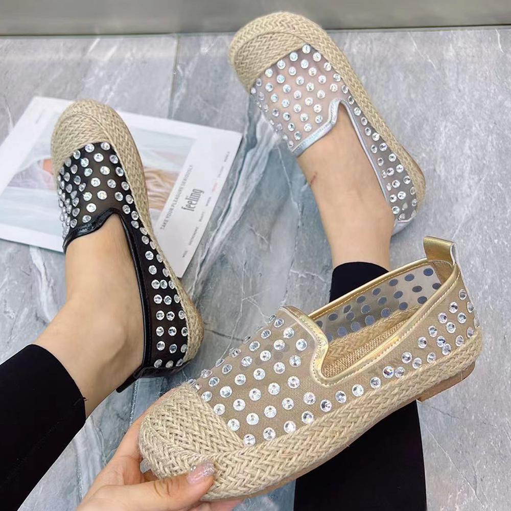 Fashion Women Flat Shoes Plus Size Rhinestone Gauze Women Loafers Designer Summer Women Shoes Casual Sandals Women