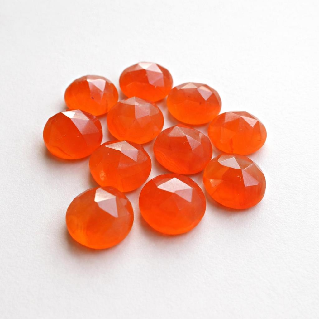 Red Carnelian Gemstones, Round Faceted Carnelian Cabochons, Orange Red Semi-Precious Stones