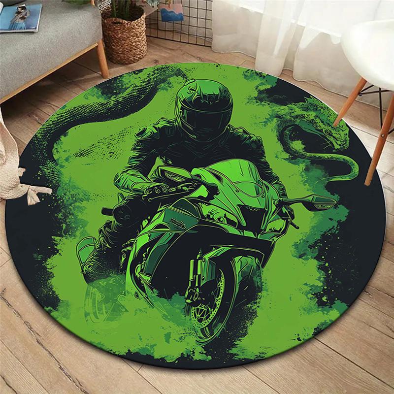 Cool motorcycle Round Area Rug,Carpet Rug for Living Room Bedroom Sofa Playroom Decor,Non-slip Floor Mat