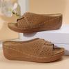 22 summer new slope heel platform slippers large size fish mouth word with casual beach shoes