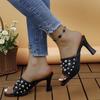 Large size rivet cool slippers 22 spring new European and American style open-toed stiletto high heels one-word high-heeled slippers