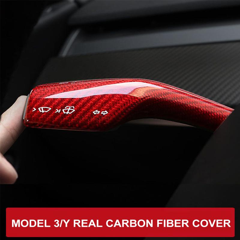 Car Gear Lever Paddle Wiper Gear Stickers For Tesla Model 3 2016- Model Y - Real Carbon Fiber Interior Accessories