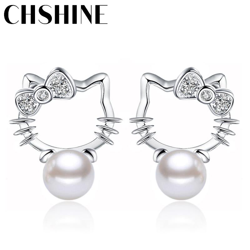 CHSHINE 925 silver new woman Shambhala Super Flash Cubic Zirconia stone pearl earrings fashion kitten jewelry 8MM