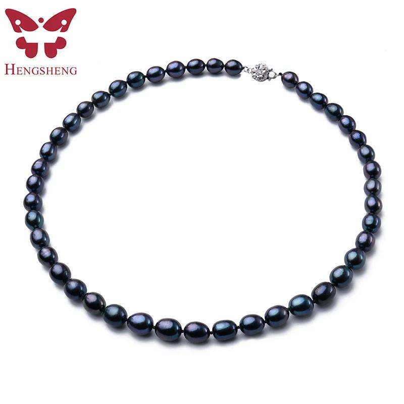 Sosire Nouă 8-9 mm Colier Bijuterii Perle Negre Naturale de Apă Dulce Cataramă Floare Argint 925 Bijuterii Fine Pentru Femei