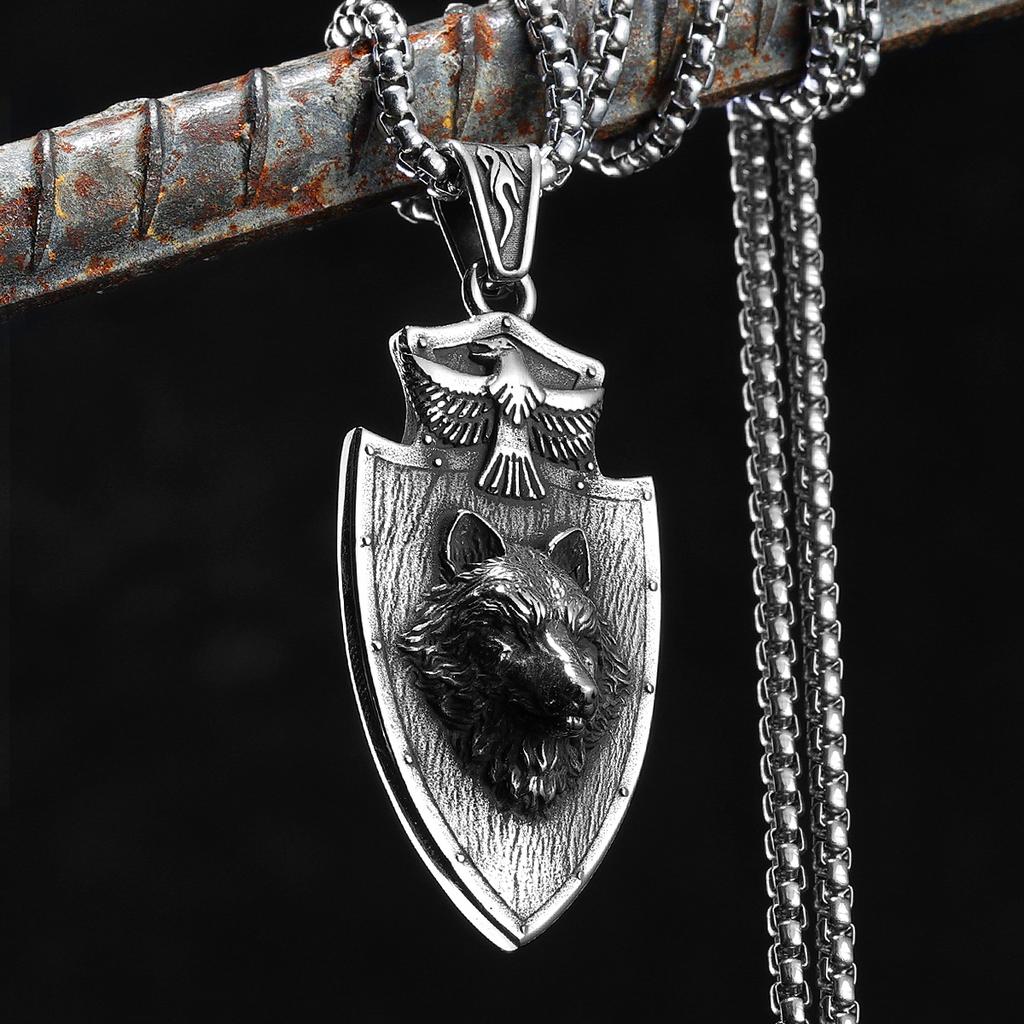 Coliere Bărbați Scut Vultur Lup Sfânt Ocrotitor Pandantiv Lan Oțel Inoxidabil Accesorii Bijuterii Modă Punk Femei Cadou