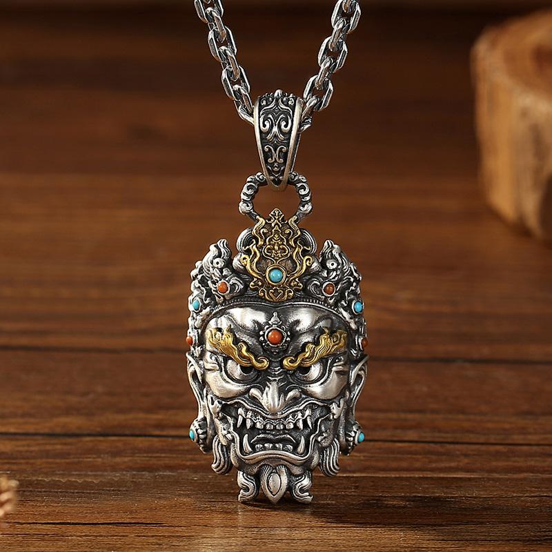 Nouă Tendință Chineză Pandantiv Mască Vajra Yaksha Gotic Retro Modă Bărbați Amuletă de Lux Bijuterii Stil Tibetan