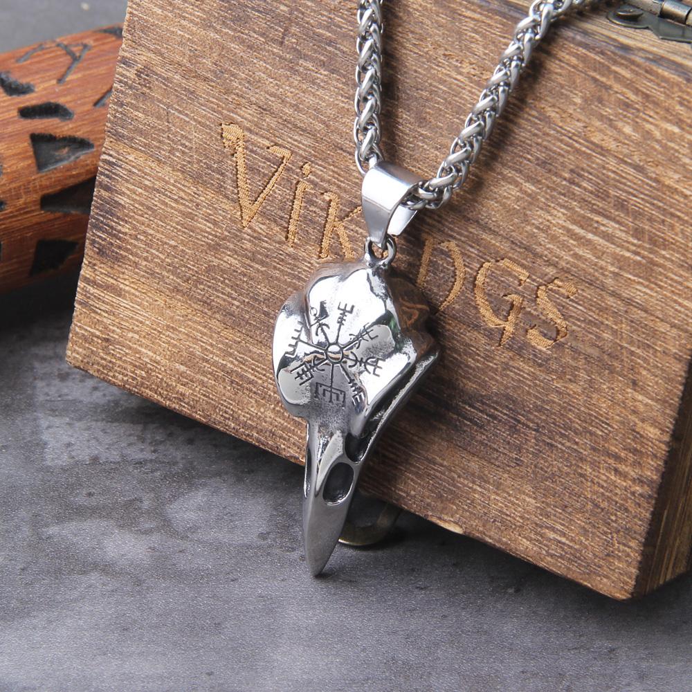 Men Viking Raven Pendant Necklace Stainless Steel Crow Necklace For Male Cool Fashion Jewelry Berserk Rune Retro Pirate Style