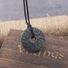 Never Fade Gray Viking Rune Pendant Necklace for Men Adjustable Chain with Wooden Box Gift