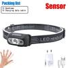 Strong Light Headlamp Portable LED Sensor Headlamp USB-C Rechargeable Head Flashlight Outdoor Camping Fishing Emergency Lantern