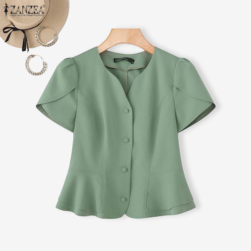 ZANZEA Bluză de vară cu mânecă scurtă și decolteu în V pentru femei