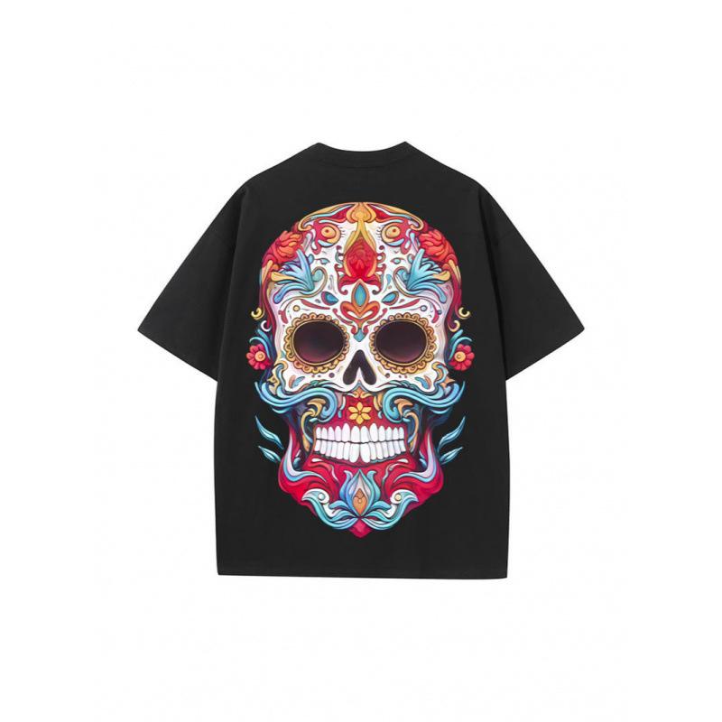 Summer new loose T-shirt skull print 230g pure cotton street tide brand short sleeve